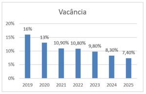 A taxa de vacância nacional atingiu cerca de 7,4%, um dos menores patamares da série.